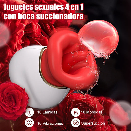 Vibrador Clitorial Boca y Lengua 4 en 1 Lamer, Morder, Succionar y Vibrar