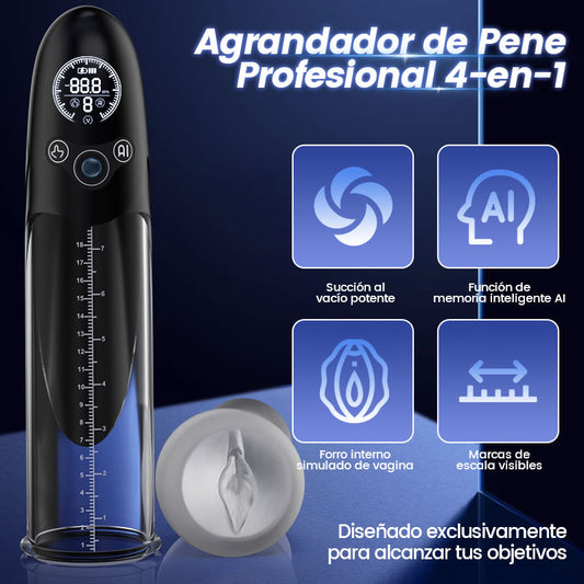 BathFun - Bomba de Pene Profesional Potente Vacío Totalmente Impermeable Función de Entrenamiento Inteligente