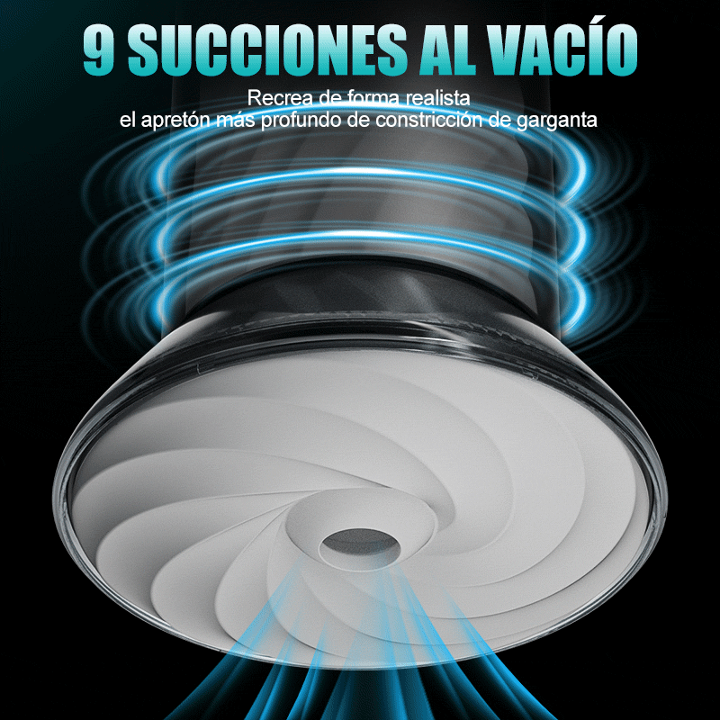 - Succión de 9 Niveles & Vibración 8000 RPM — Sistema patentado de dos etapas para constricción profunda de garganta y estimulación completa del eje.