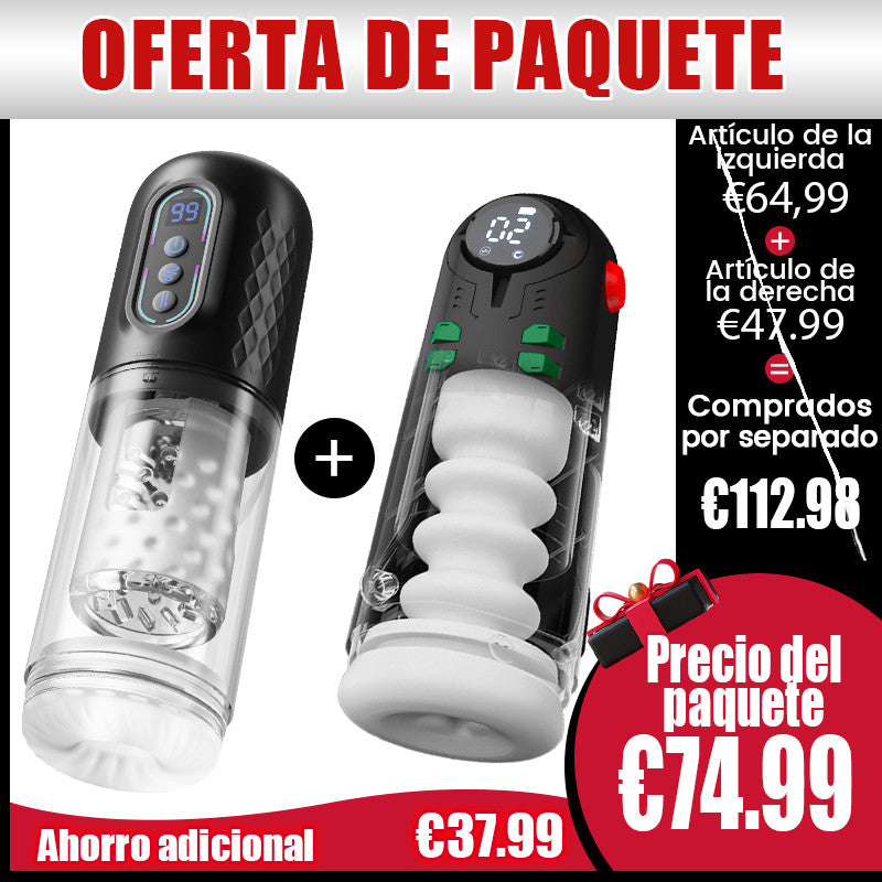 ¿Todavía dudas por los altos costos de múltiples funciones? ¡No te preocupes! Te presentamos nuestro exclusivo paquete de ahorro de doble producto. ¡Elige ahora nuestra oferta combinada limitada de Masturbador + Masturbador – por solo 74,99 € llévate a casa ambos productos con un valor total de 112,98 € y ahorra directamente 37,99 €! ¡Vive un doble placer y momentos intensos a un precio increíblemente bajo!